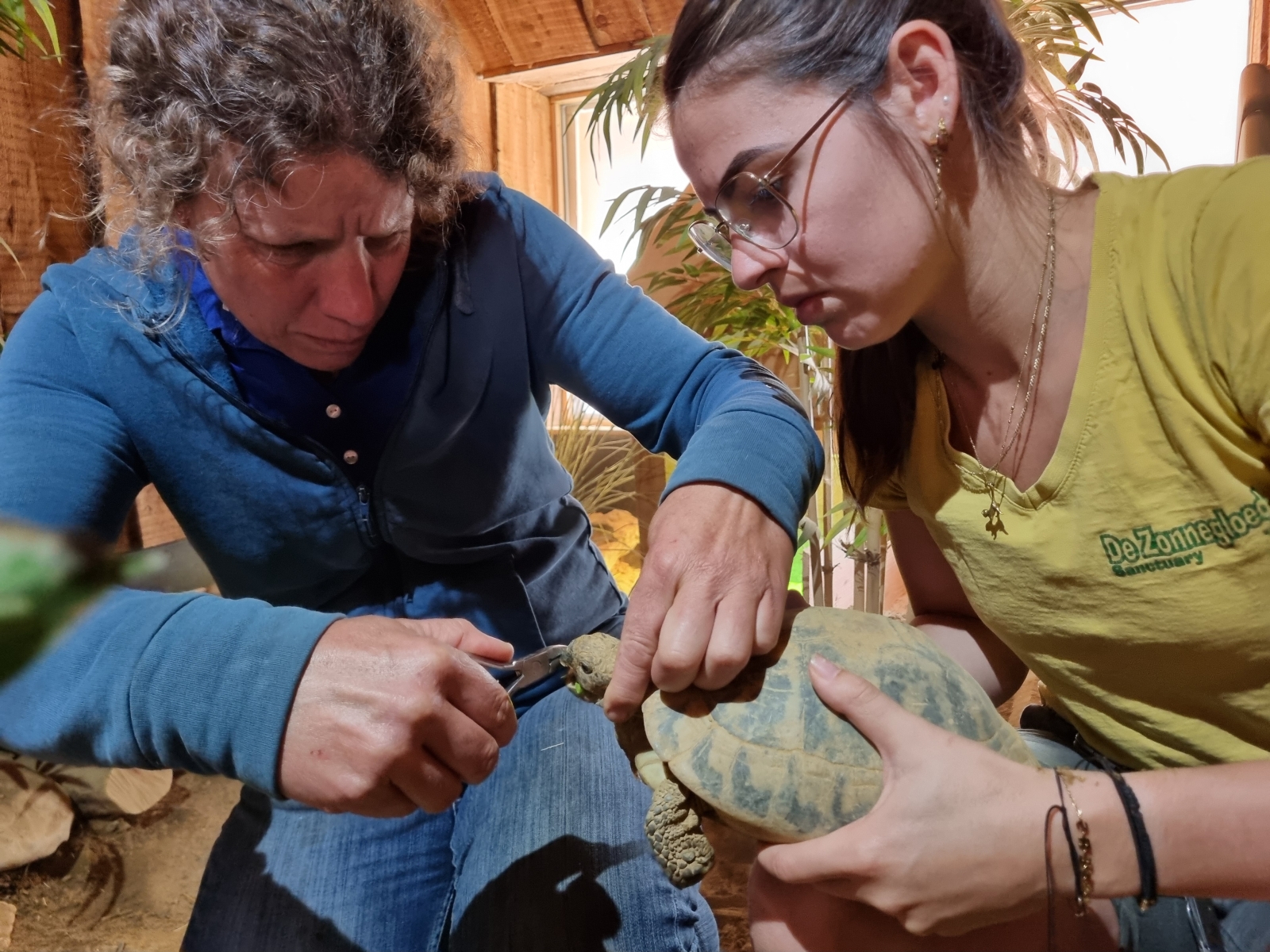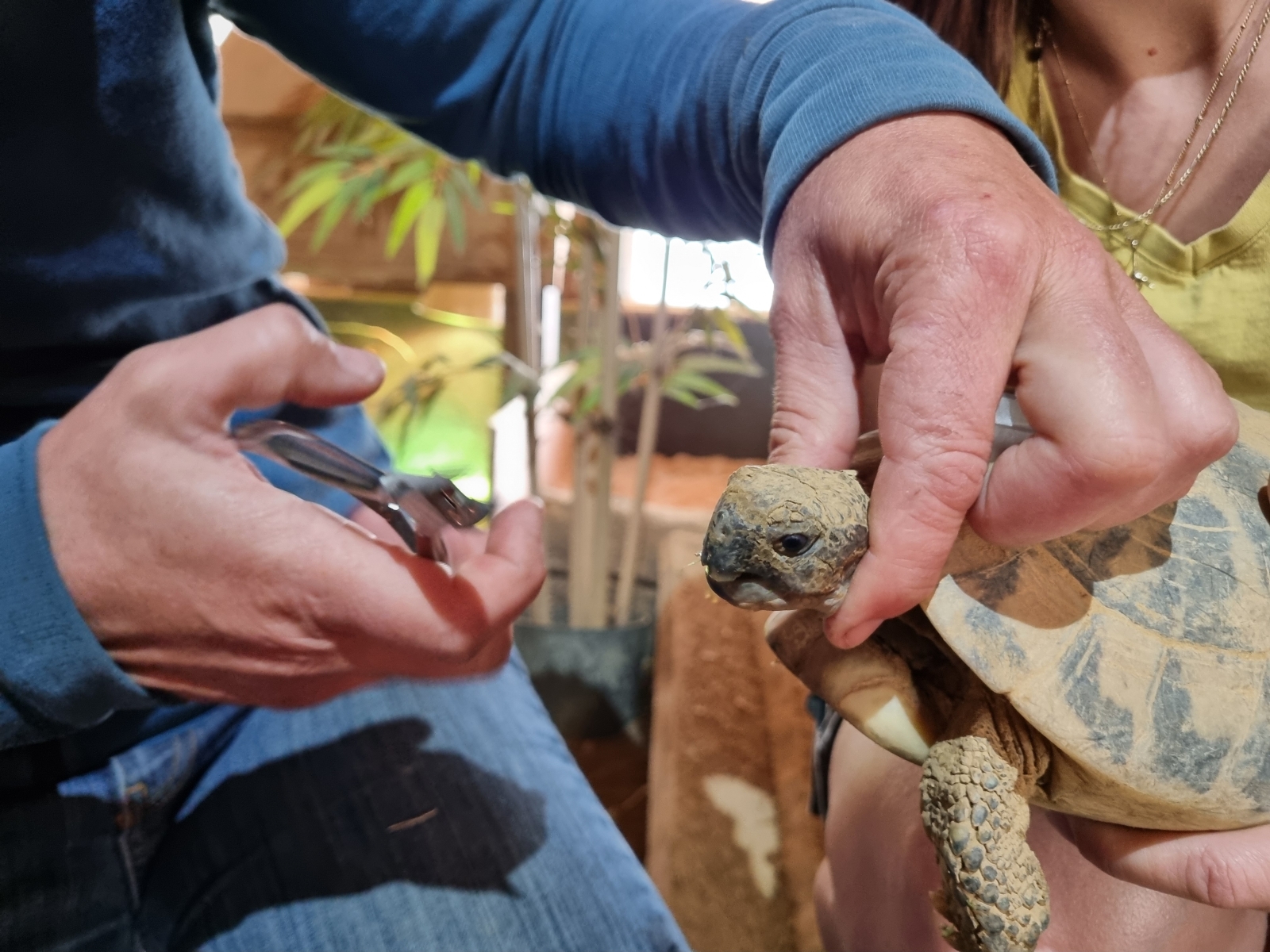 Bijknippen mond overgroei + schoonmaken oog bij Griekse landschildpad Fietje