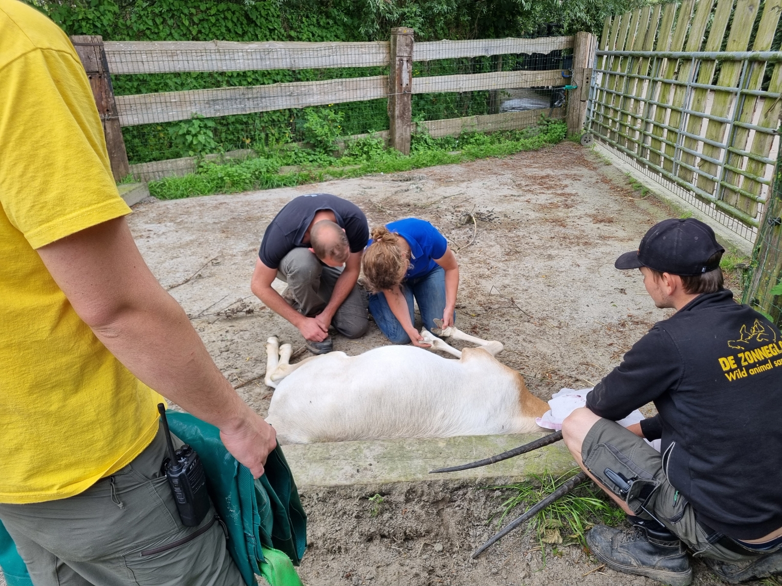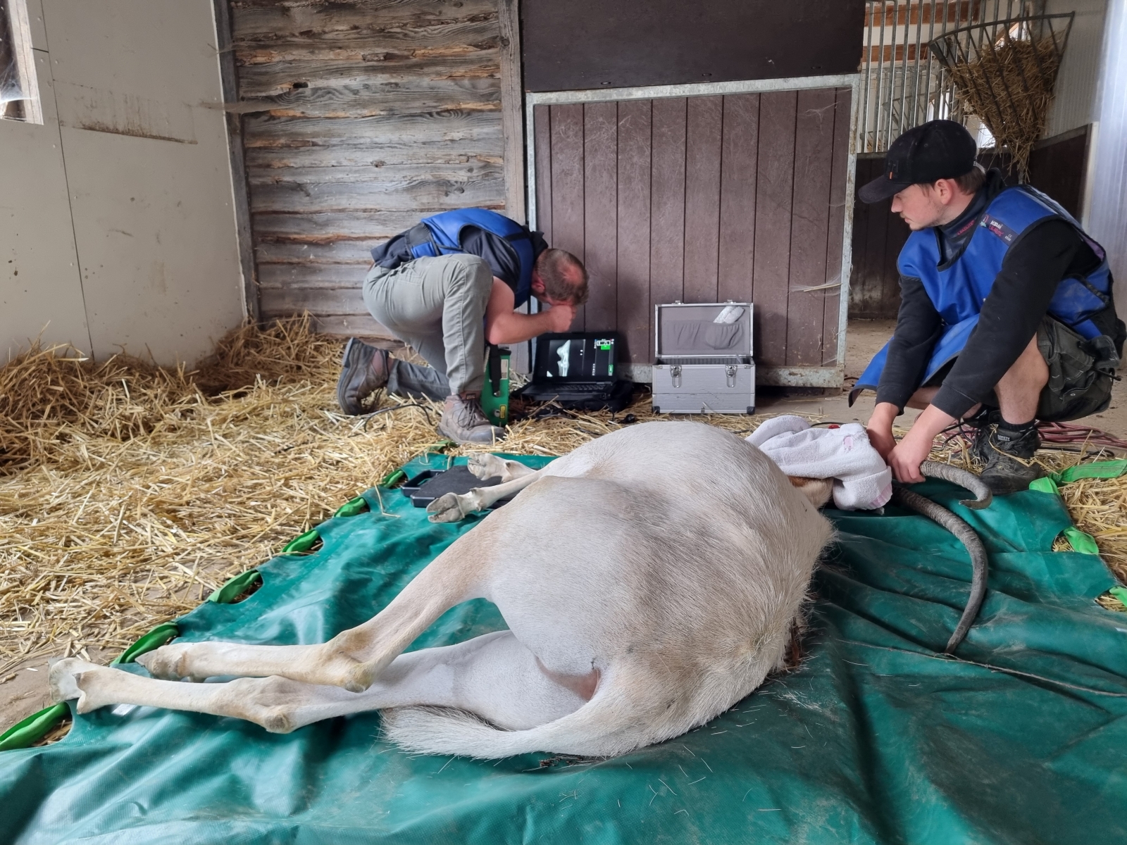 Back-up dierenarts Karel Verdru is langsgekomen om te helpen met zijn draagbare RX-apparaat. In de elleboog van Mao zou er wellicht een probleem zijn met de aanhechting van de spieren. Dit probleem kan de mankheid van Mao verklaren, maar vergt veel tijd en rust om goed aan te helen. We zullen we hem dus vooral veel tijd moeten gunnen.