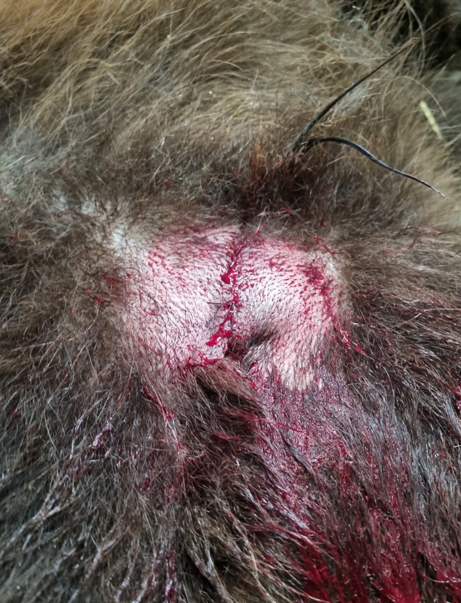 Nagels + behandeling Hotspot op de rug van Poolvos Taka
